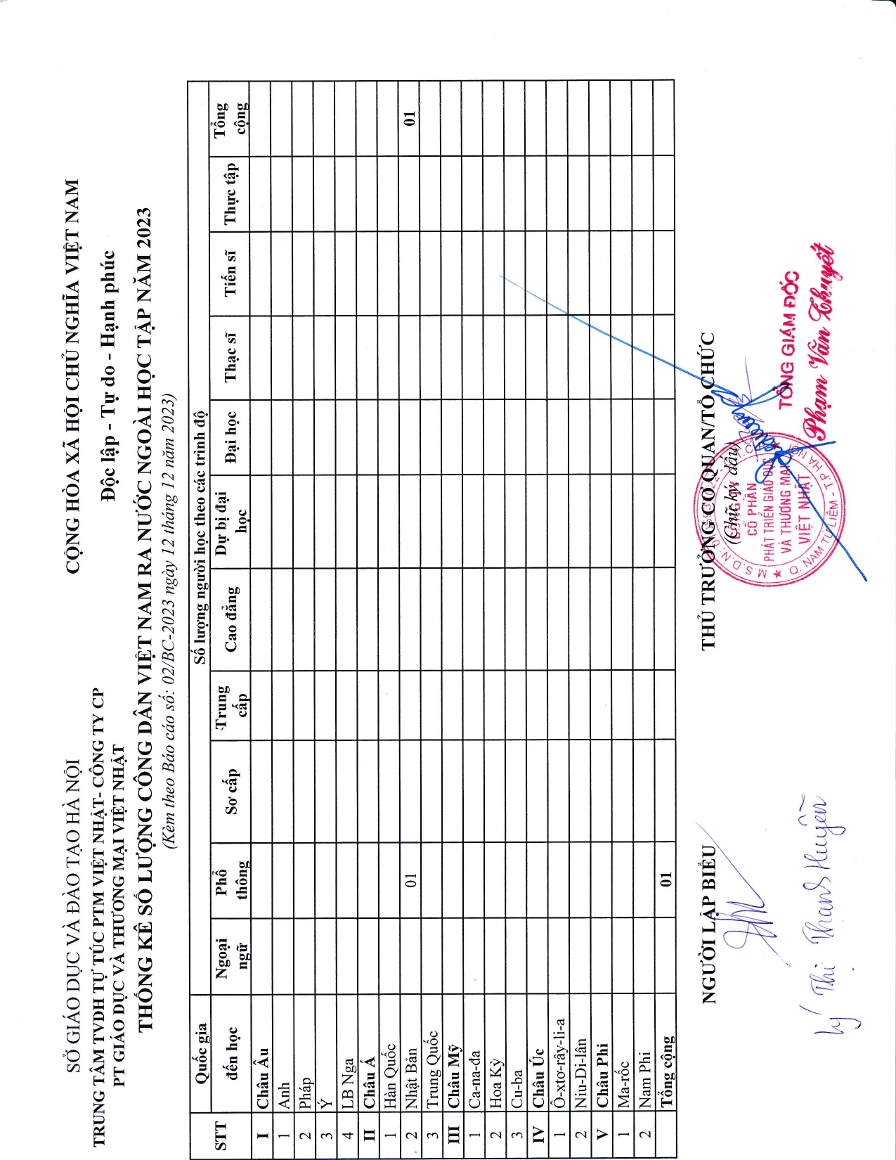 I. BÁO CÁO ĐỊNH KỲ NĂM 2023