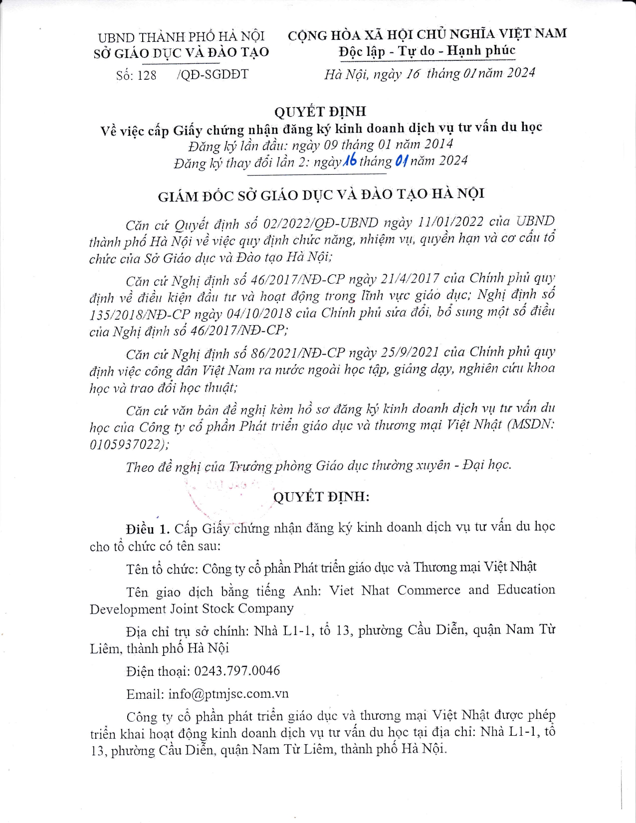 1. GIẤY PHÉP TƯ VẤN DU HỌC
