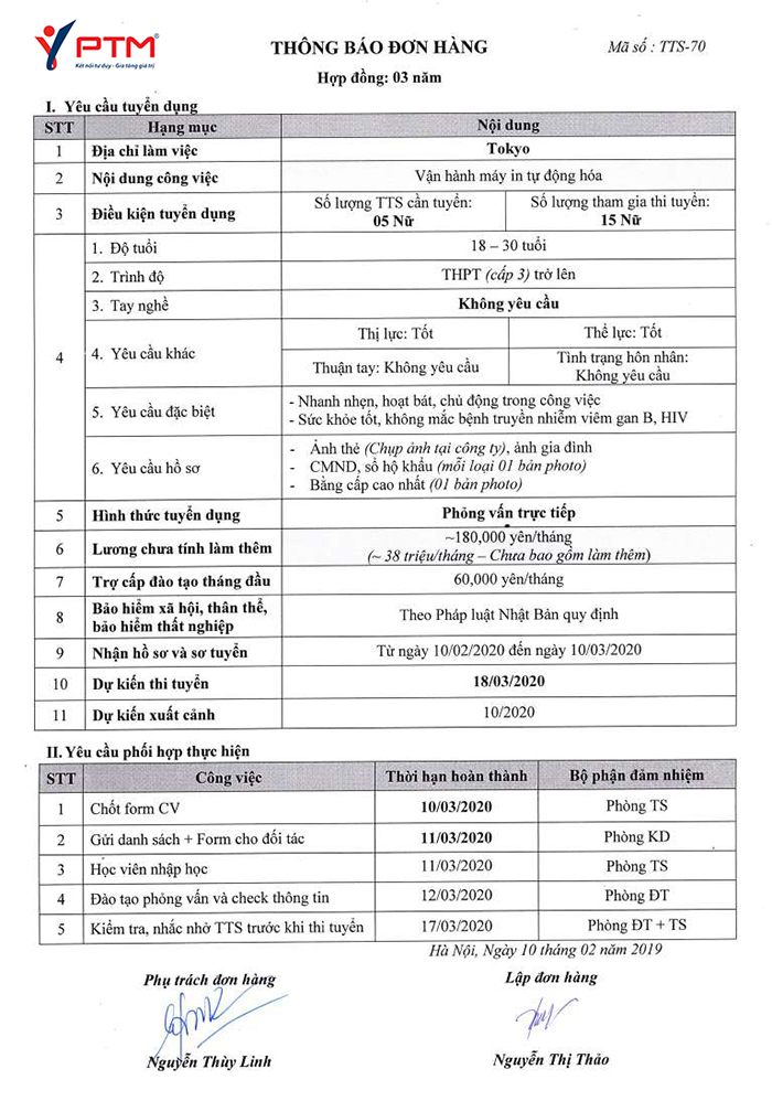 ĐƠN HÀNG MỚI - CƠ HỘI MỚI ĐI XUẤT KHẨU LAO ĐỘNG NHẬT BẢN 2020